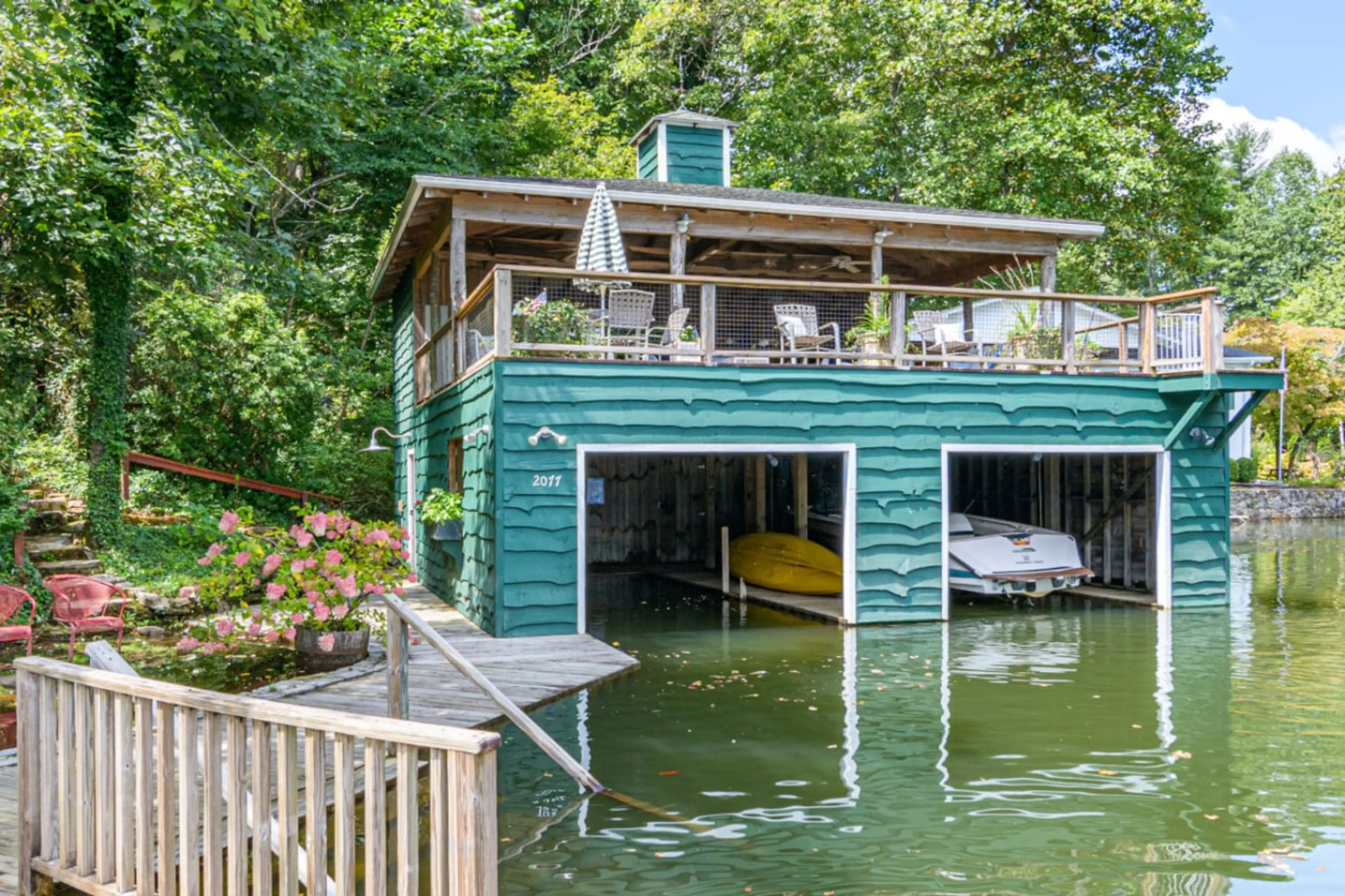 Forget your worries in this spacious and serene space.Experience the ultimate lakefront getaway at our 6BD | 6.5BA family cabin on beautiful Lake Summit. This lakefront home has warm chestnut walls, vaulted ceilings, cozy fireplaces, 2 porches, stone terrace and a private 2-story boathouse on the wa...
